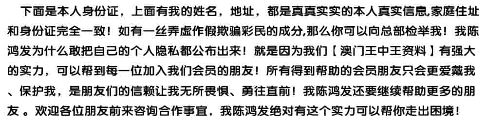 发表于11天前 陈总,我昨晚验证过你的资料, 昨晚也打了你的电话加了你的微信,说今天购买你的一码三中三的书,刚刚我在农村信用社转了798元过去了,麻烦陈总帮我办理好会员给我把书快递过来,今晚的资料先发到我手机上给我,我明天也给陈总汇个红包。 |