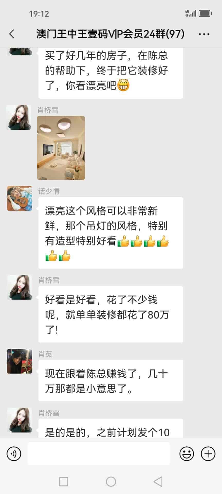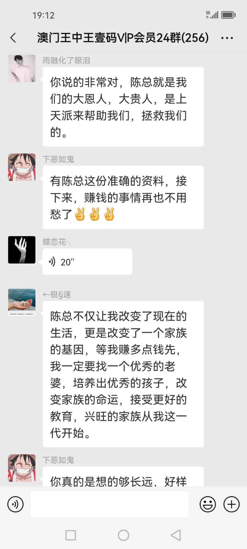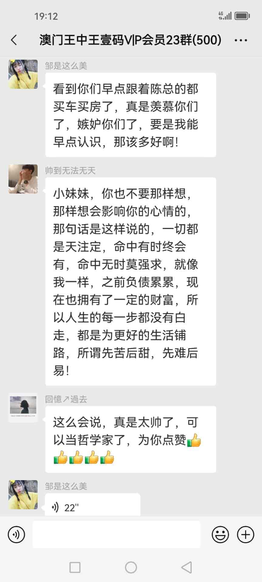 发表于45天前 陈总好,我是做餐饮生意的,因门店扩建修路生意一落千丈,迟迟没修好路亏损一无所有,整天两公婆吵架都不知道怎么好,又没别的手艺从事其它行业。偶然一次玩手机看到你的一码网站,看到很多会员中奖了,我也相信自己的感觉,我的感觉告诉我这是真的。所以下定决心跟陈总合作,没想到竟然真的在短短五期的时间,让我赢回之前亏损的钱,还赚了六十多万。已汇红包38800元,千言万语汇成两个字——感谢! |