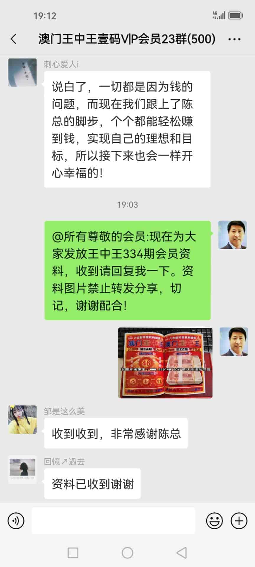 发表于5天前 陈总你的资料太准了,昨晚上下注的钱已经拿到了,购买你的一码三中三书籍才几期就把以前输的钱给赢回来了,还赚了不少,等下去银行存钱给你汇个20000元的红包,感谢陈总的帮助。 |