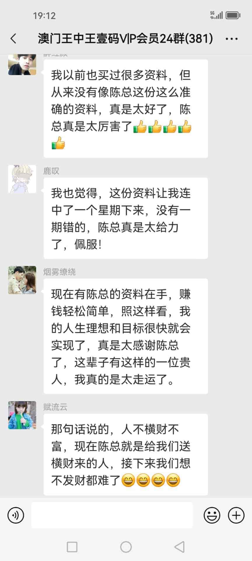 发表于10天前 陈总好,拿到您的一码三中三资料才几期就赢了五十多万,之前欠下的债都还完了,现在有钱了就来银行存定期,怕以后乱花钱,谢谢陈总的帮助。 |